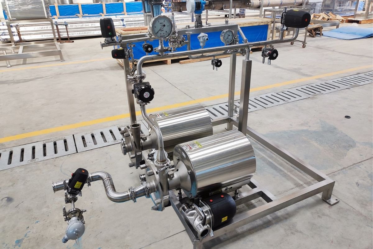 The system has a sleek mechanical construction in SS 316L, all contact parts are electropolished to less than 0.4 RA microns, and the joints are orbitally welded with video-boroscope. Tanks are designed with plain or jacketed construction. The pump is designed to operate optimally at peak loads.